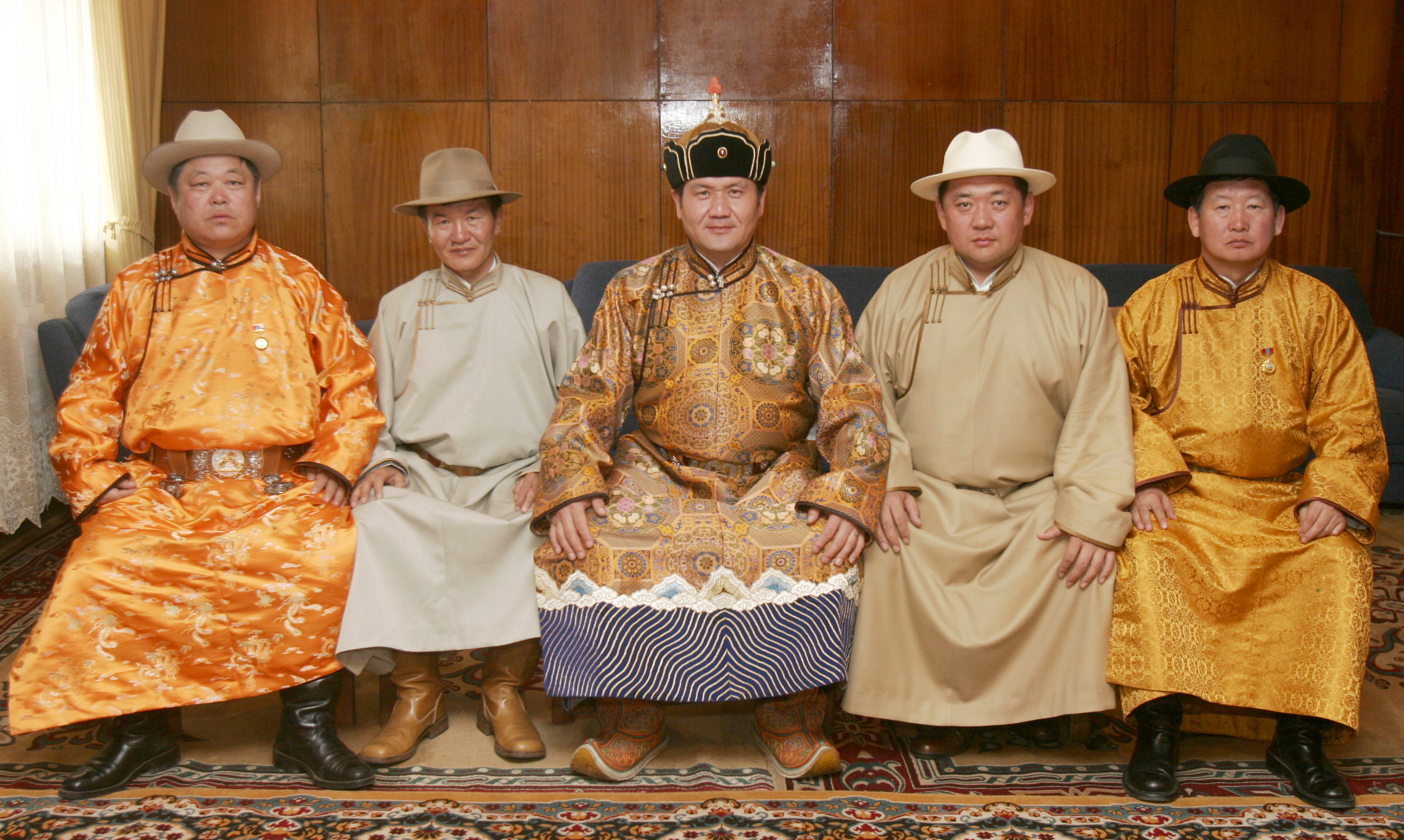 Ингээд зарим “хаад ноёд”-ынхоо “гэгээн дүр”-ийг “цол хэргэмтэй” нь сайн тогтоож авцгаа. Уг нь бүгдээрээ “сайн” мэдэх зураг ч гэсэн “мартчихаад” байдаг шүү, Та нар. Зүүн гараас: 1. Эрмүүн зүтгэлтэн, 2. Эх оронч хүн, 3. Үндэсний удирдагч (голд нь байгаа энэ хүн тэмцэгчдийг ёстой жигшдэг байсан, одоо өөрөө иргэн “тэмцэгч” болсондоо, зайлуул), 4. Бүтээн байгуулагч, 5. Энэ нөхрийн нэрийг түвдээс орчуулбал Эш үзүүлэгч + Ялгуусны орлогч гэсэн утгатай мэт. Ингэхлээр “орлогч” феодал л байх.