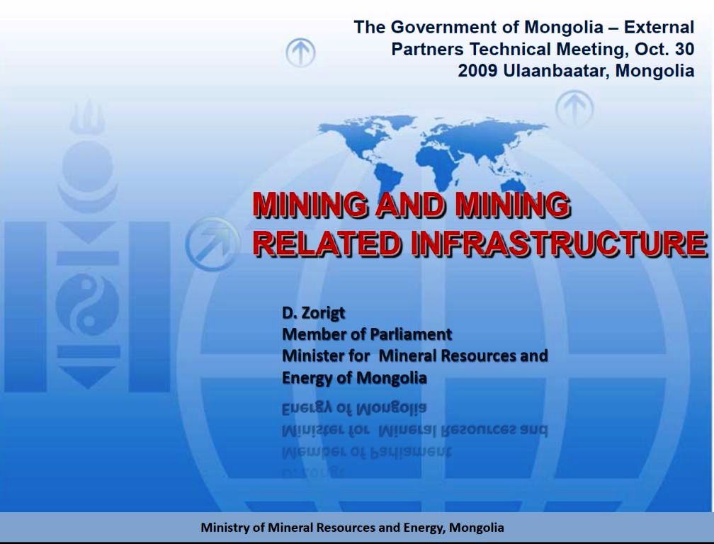 Дөнгөж сая миний блогийн уншигчдын тоо 300.000 боллоо. Энэ бол монголын хэмжээнд дээд үзүүлэлт бөгөөд миний хөдөлмөрийг үнэлсэн манай олон уншигчдын хичээл зүтгэлийн үр дүн гэж бодож байна. Ингээд 2009 оны 10 дугаар сард манай сайд Д.Зоригт гадаад түншүүдэд тавьсан танилцуулгаас “шууд ойлгохоор” хэдэн зургийг ямар ч тайлбаргүй тавья. Үнэнээ хэлэхэд зурагнаас жаахан уйдаж байна, одоо бол шинжилгээ, дүгнэлт хийх цаг болсон гэж бодож байна. Гэхдээ уншигчид хүсэх аваас хар мянган зураг байгаа шүү…