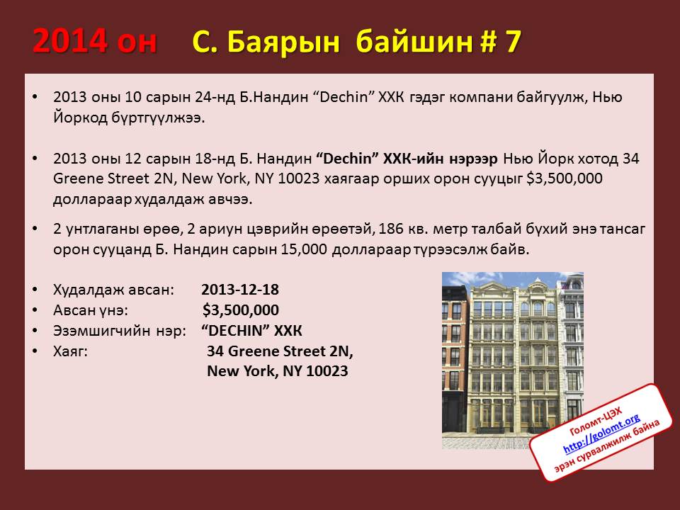 Тийм ш дээ. Америкт хөрөнгийн, ялангуяа үл хөдлөх хөрөнгийн бүх мэдээлэл ил тод байдаг. Нуух, нуугдах ямар ч боломж байхгүй…